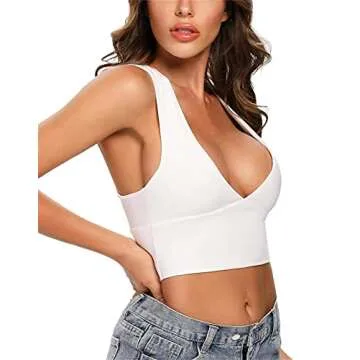 SKYVOICE Women's Sexy Deep V Neck Sleeveless Back Cutout Racerback Tank Crop Top White