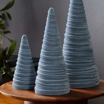 Why You Will Love This Product? You'll fall in love with the Slate Blue Velvet Cones not just for their beauty but also for the way they enhance your surroundings. Each piece evokes a sense of tranquility and sophistication, making your home feel inviting and warm. The thoughtful design ensures that they are not only visually appealing but also serve practical purposes in your decor, whether as centerpieces or shelf enhancements. Embrace the charm and versatility of these velvet cones, and watch as they transform your space into a haven of elegance.