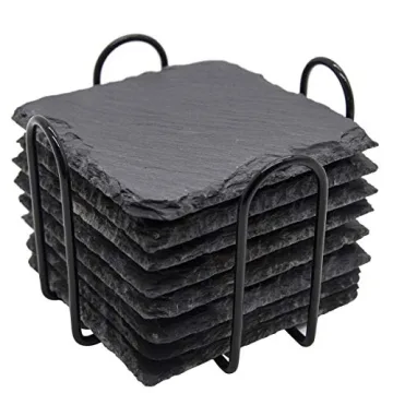The coasters come with a stylish metal holder for easy organization and accessibility, ensuring that you always have them on hand for those impromptu gatherings or quiet nights at home. Designed to withstand wear and tear, these coasters are both sturdy and durable, meaning they will stand the test of time while keeping your surfaces safe from water buildup and potential damage. Unlike many standard coasters, the slate material may take a moment to absorb moisture, but rest assured, they effectively prevent spills, giving you peace of mind.