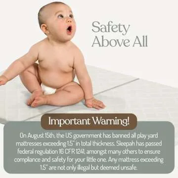 Introducing the Sleepah Pack and Play Mattress, the ultimate sleeping solution for your little one that expertly combines safety, comfort, and convenience. Designed specifically for babies and toddlers, this foldable tri-fold mattress measures 38" x 26" x 1.5", ensuring a snug fit for most play yards and pack n plays. Committed to the highest standards of safety, this mattress has successfully passed stringent testing, including 16 CFR 1241 compliance, giving parents peace...