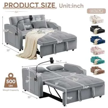 Show moreIntroducing the Sleeper Sofa Couch Bed with USB & Type C Port, an exquisite blend of modern elegance and multifunctionality that effortlessly transforms your living space. Crafted with a chic velvet finish and accentuated by a sophisticated gray hue, this convertible loveseat not only beautifies your room but also serves multiple purposes. Ideal for small apartments or cozy bedrooms, its innovative design caters to your diverse needs, be it lounging, sleeping, or simply relaxing with a good book.
