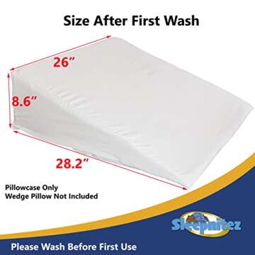 Sleepnitez Bed Wedge Pillow Case Cover, White Loose Fitting 100% Egyptian Cotton Wedge Pillowcase for Our 8" Wedge Pillow. Zip Closure for Easy Removal.
