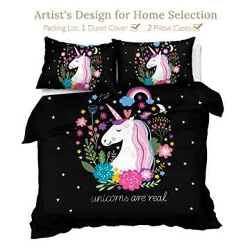 Sleepwish Unicorn Twin Comforter Cover for Girls Unicorn Floral Bedding Set Black Unicorn Bed Set Cartoon Pink Unicorn Bedspreads 3 Piece Cute Unicorn Duvet Cover for Kids Teenage Gifts (Twin Size)
