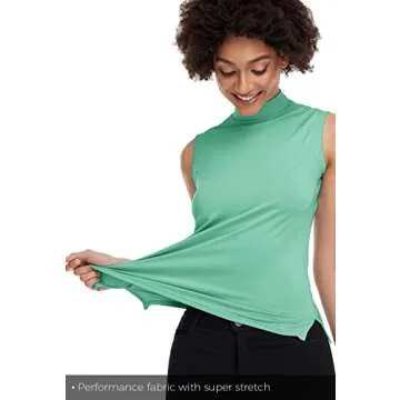 Sleeveless Golf Polo Shirts for Women Dry Fit Mock Neck T Shirts Zip Collar Ladies Clothes Moisture Wicking Collared Tennis Shirts Stretch SPF 50+ Tank Top Slim Fit Quick Dry Apparel Green