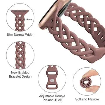 Show more Introducing the iWabcertoo 4 Pack Slim Silicone Apple Watch Bands for Women – the perfect blend of style and functionality! Designed to accommodate a wide range of Apple Watch sizes, including 38mm, 40mm, 41mm, 42mm, 44mm, 45mm, 46mm, and 49mm, these bands are compatible with popular models such as the Apple Watch SE, Series 7, and the new Ultra 2. Each band features a latest braided design that combines elegance with everyday wearability, making them suitable for both casual outings and formal events.