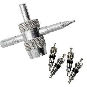 Slime 20088 Valve Tool, 4-Way, Plus Valve Cores for All Types of Tire