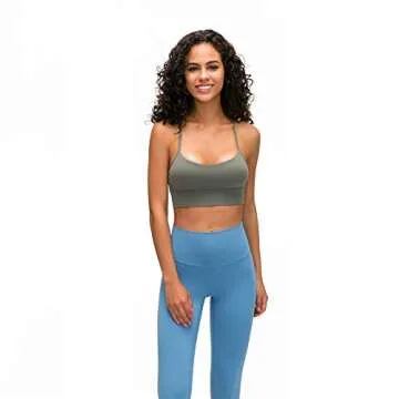 Sling Sexy Longline Strappy Padded Green Sports Bra for Women, Light Support Y Racer Back Yoga Bra Crop Tank Top