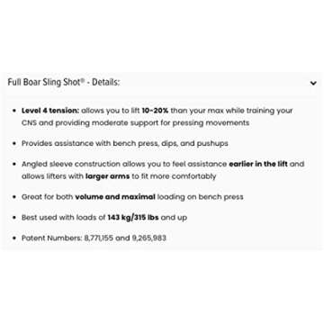 Show moreIntroducing the Sling Shot Mark Bell's Full Boar, the ultimate assistance bands designed to take your exercise performance to the next level. These bands are engineered with tapered sleeves for a snug fit, allowing you to wear the Slingshot higher up on your arm. Say goodbye to distractions and hello to a focused workout experience! With the innovative single ply material, these bands are not only form-fitting but also slightly stronger than the original Slingshot, ensuring durability and reliability in every lift.