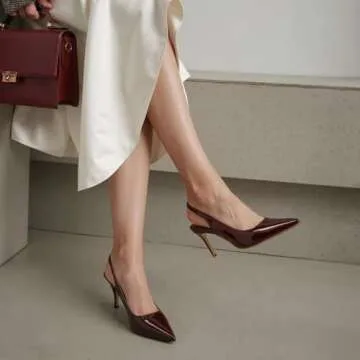 Slingback Heels for Women Pointed Toe Stiletto High Heels Closed Toe Pumps Slip on Burgundy Heels 2.95 inch Wine Red8.5