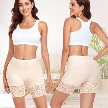 Slip Shorts for Under Dresses Women Anti Chafing Underwear Seamless Boyshorts Panties Lace Under Shorts (#1 Nude,XX-Large)