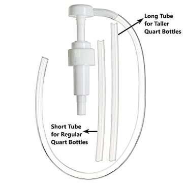 Show more The Slippery Pete Fluid Pump for Quart Bottles is the ultimate solution for those messy fluid transfers. Designed specifically to fit standard quart containers with approximately a 1-inch opening, this pump features both long and short suction tubes, making it versatile for various bottle types and sizes.
