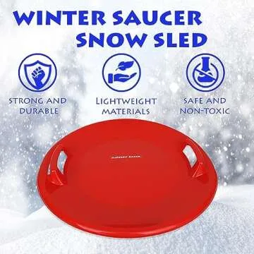 Slippery Racer Heavy-Duty Cold Resistant Downhill Pro Plastic Outdoor Winter Saucer Disc Snow Sled with Handles, Red