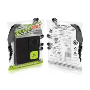 Slipstick GorillaPads CB142 Non-Slip Furniture Pads/Grippers (Set of 8) Furniture Leg Floor Protectors, 2 Inch Square, Black