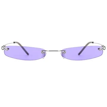 Slocyclub Vintage Rectangle Skinny Sunglasses for Women Men, Retro Small Thin Sunglasses, Rimless Trendy Sunglasses