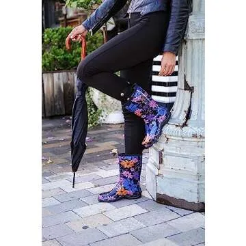 Sloggers Waterproof Floral Rain Boots for Women - Cute Mid-Calf Mud & Muck Boots with Premium Comfort Support Insole, (Flower Power), (Size 8)