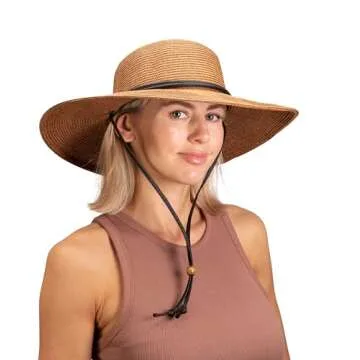 Sloggers Women's Wide Brim Braided Sun Hat with Wind Lanyard - UPF 50+ Maximum Sun Protection Dark Brown