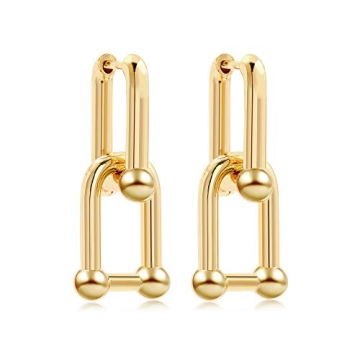 Sloong 14k Gold Plated U Shape Chunky Link Chain Earrings for Women