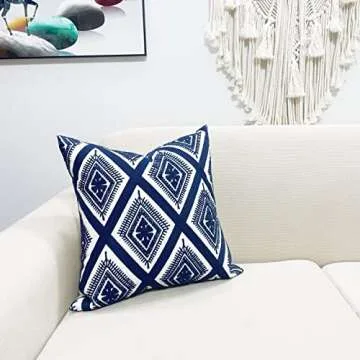 Slow Cow Embroidery Cushion Cover Decorative Throw Pillow Cover Geometric Invisible Zipper Pillow Cover for Living Room 18 x18 Inch Navy Blue