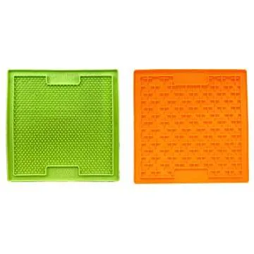 Show moreIntroducing the LickiMat Set, a delightful and engaging enrichment tool designed specifically for your furry companions. This unique product features textured mats in vibrant colors—green and orange—that are not only visually appealing but also serve a crucial role in stimulating your dog's senses. Made from non-toxic materials, these mats are perfect for spreading delectable treats like peanut butter, yogurt, or even frozen goodies to keep your pet happily occupied.