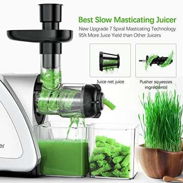 Slow Masticating Juicer Extractor, Homever Cold Press Juicer Machines,Celery Juicer for Home,Wheatgrass Juicer Easy to Clean and Quiet Motor, BPA Free Juicer for Vegetables and Fruits, Silver
