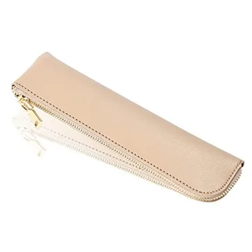 Sluxa Leather Pencil Case - Elegant Zip Pouch for Pens and Makeup Brushes
