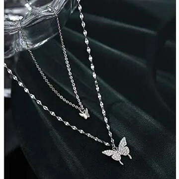 SLUYNZ 925 Sterling Silver CZ Butterfly Choker Necklace for Women Butterfly Layered Necklace Chain (A-Silver)