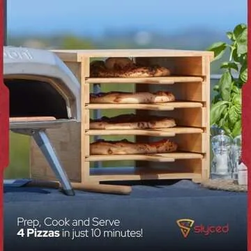 Slyced Wood Pizza Peel Rack, Includes 4 x 12 Inch Non-Stick Bamboo Pizza Boards - Innovative Design Allows You To Prep, Cook and Serve 4 Pizzas in 10 Mins - Real Wood Pizza Paddle Stand