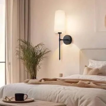 SLYYMY Wall Sconces Sets of 2, Retro Industrial Wall Lamps, Bathroom Vanity Sconces Wall Lighting with White Fabric Shades, Wall Lights for Bedroom Living Room Kitchen Island (Black)