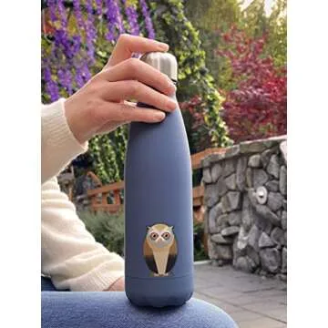 smållo | Water Bottle with Cute Owl Design | Stainless Steel | Double Wall Insulated | 17oz, Blue
