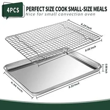 Small Baking Sheet with Rack Set [2 Small Cookie Sheets + 2 Small Baking Racks], CEKEE Stainless Steel Small Baking Pan and Grill Rack - Rust & Warp Resistant & Nonstick, Size 9.33 x 6.96 x 1 Inch