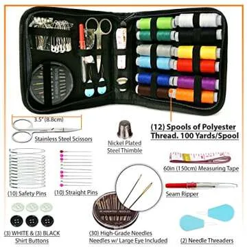 Show moreIntroducing the Vellostar Mini Sewing Kit – the quintessential companion for all your sewing adventures! Compact yet comprehensive, this kit equips you with essential tools for any on-the-go repairs or creative sewing projects. Included in this set are high-quality sewing needles, a vibrant assortment of threads in various colors, sharp scissors, a handy thimble, durable buttons, practical threaders, a versatile seam ripper, and more! This travel sewing kit is not just a necessity but also a time-saver, perfect for quick fixes while on vacation, at school, or when you simply need to look your best.