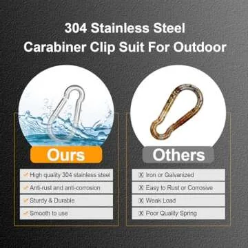 Show more The KINLINK small carabiner is a testament to durability and functionality, crafted from premium 304 stainless steel. This high-quality material provides a robust solution for all your attachment needs while ensuring it remains waterproof, rust-proof, wear-resistant, and corrosion-resistant. Whether you're an outdoor enthusiast or someone who appreciates tidy organization, this small carabiner clip is designed to cater to various applications in your daily life.