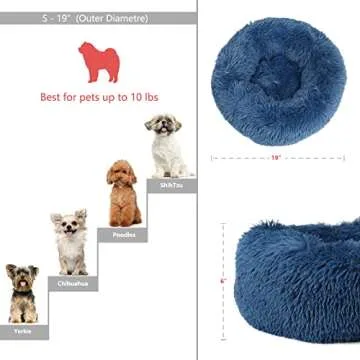 The plush design featuring expandable polyethylene bolsters ensures that dogs and cats alike can sink into its softness. Measuring at a convenient size of 19.7”x 19.7”x 6”, this calming bed is perfect for small dogs and cats weighing up to 10 lbs, giving them their own little sanctuary to curl up, nestle, and relax. Made with faux shag fur, it offers a mix of warmth and softness, satisfying the innate instinct dogs have to curl up when they sleep.