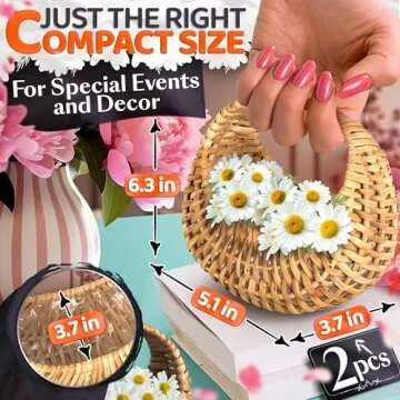 Show more Introducing the perfect blend of elegance and functionality, the Mini Wicker Basket is designed for both beauty and practicality. Measuring 6.3 x 3.75 x 5.12 inches, this compact size makes it ideal for a range of occasions, whether it's a cozy picnic, a romantic wedding, or a classy office display. Made from high-quality wicker, this lightweight yet sturdy basket boasts a retro charm that can elevate any setting.