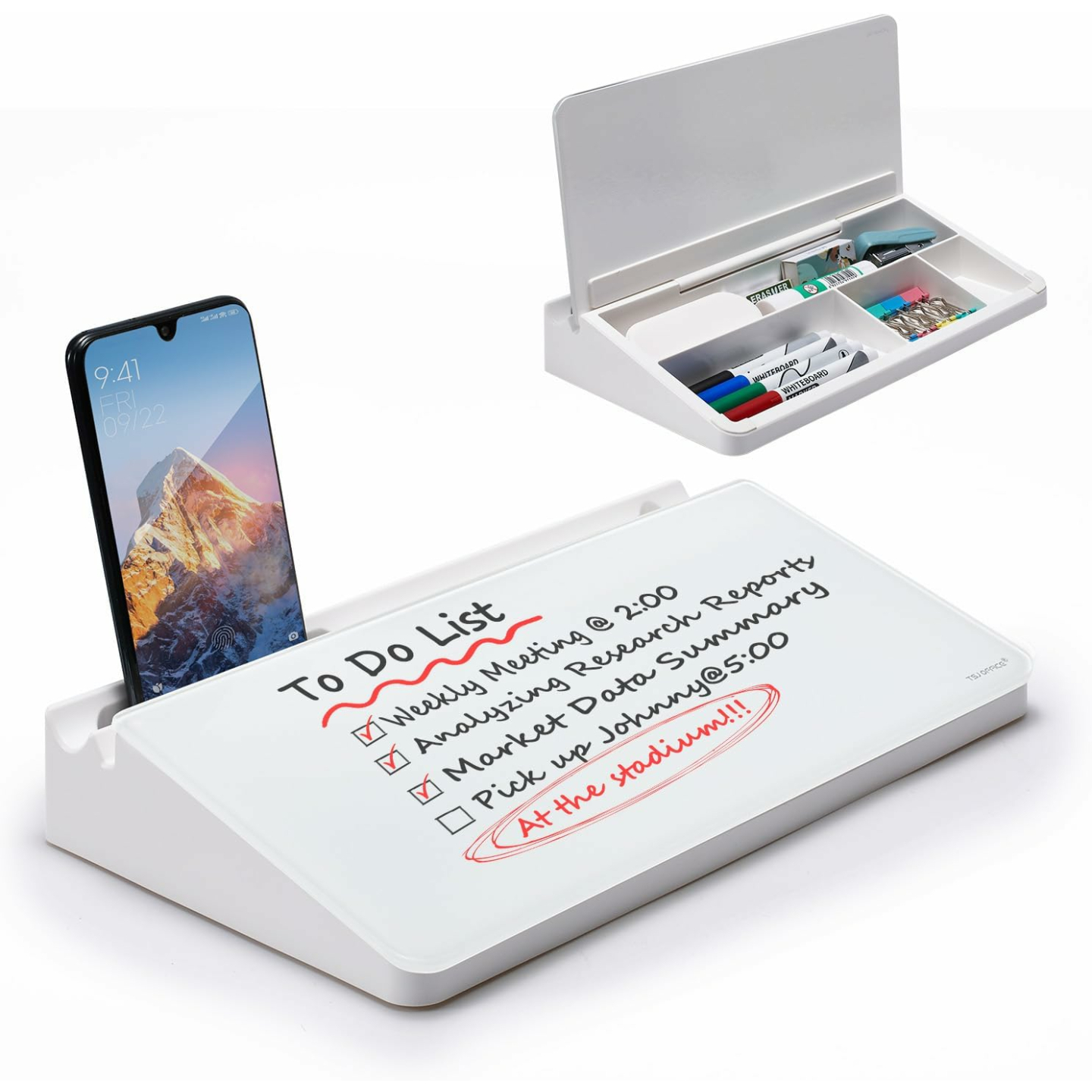 Small Glass Desktop Whiteboard with Drawer & Accessories - TSJ OFFICE
