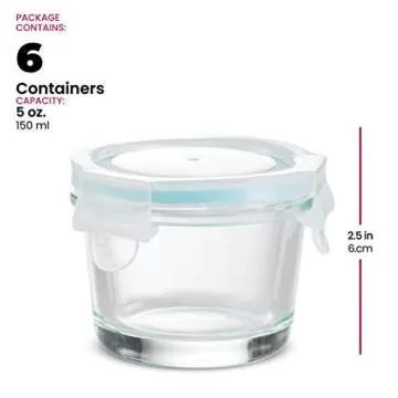 Small Glass Meal Prep Food Storage Container - Airtight, Leakproof, Microwave & Dishwasher Safe - Perfect for Snacks, Dips, 6 Count - Teal