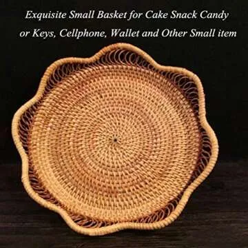 Small Handmade Woven Food Serving Display Storage Basket Basket Fruit Candy Cake Bread Basket Or Storage for Keys, Cell phone, Wallet