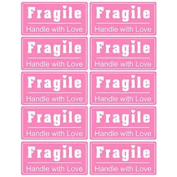 Small Pink Shipping Sticker,MeshaKippa 2x1 inch 200pcs Pink White Small Fragile Shipping Sticker
