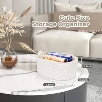 Small Rope Basket for Organizing, Gifting - Decorative Basket for Gifts Empty - Cute Woven Gift Basket - Dog Cat Toy Box - Toy Organizer Basket Baby Nursery Bin - White Storage Basket with Handle