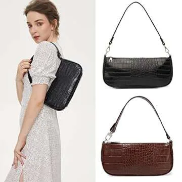 Small Shoulder Bags for Women Retro Classic Tote Purse Handbag Crocodile Pattern Clutch, Coffee
