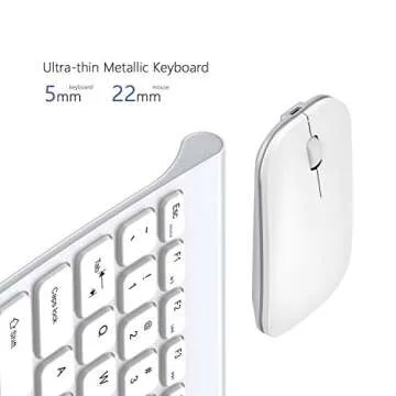 Small Wireless Keyboard Mouse Combo, seenda Ultra Thin Compact Rechargeable Wireless Keyboard with Silent Mouse Low Profile Keys for Windows 7/8/10/11/11 Pro Laptop Computer, Silver White