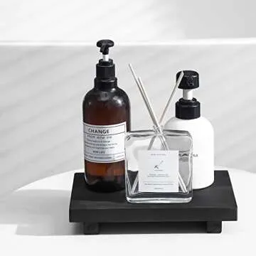 Small Wood Tray Pedestal Stand Farmhouse Bathroom Decor Decorative Wooden Riser Kitchen Soap Dish Holder for Vanity, Counter, Sink, 9" x 5.9" - Black