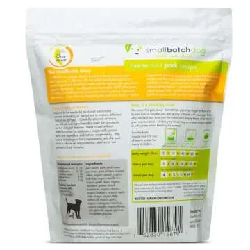 Show more Introducing the smallbatch Pets Freeze-Dried Premium Raw Food Diet for Dogs, the ultimate solution for pet owners looking to enhance their furry friend's nutrition while simplifying mealtime. This 14 oz pack features a delectable Pork Recipe designed with your dog's health in mind. With responsibly sourced meats and organic produce, each bite is packed with quality and flavor, making it the perfect addition to any dog's diet. Our freeze-dried formula not only preserves the raw benefits of nutrition but also eliminates the hassle of freezing or thawing, providing your pup with an effortlessly nutritious meal anytime.
