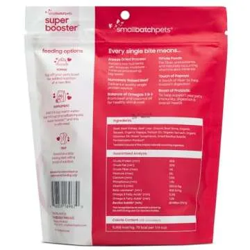 smallbatch Pets Freeze-Dried Super Booster Beef Bites for Dogs & Cats, 7 oz, Made in The USA, Organic Produce, Humanely Sourced Meat, Single Source Protein, Mixer & Topper, with Papaya and Probiotics