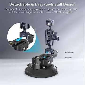 When compared to other suction mounts on the market, the SMALLRIG 4236 stands out due to its superior load-bearing capacity and innovative safety features. While many mounts can hold cameras, few offer the combination of durability and ease of use found here. Its unique NATO rail system allows for rapid changes, something many rivals lack. This mount combines practicality with versatile design elements, making it a preferred choice for serious photographers.
