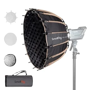 Show moreIntroducing the SmallRig Parabolic Softbox Quick Release, the essential lighting tool that transforms your photography and videography experience. Measuring at a compact size of 21.6 inches (55cm), this softbox is designed to deliver stunning, dispersed light while remaining lightweight and highly portable. Weighing only 1.1 kg and foldable for storage, you can easily carry it in its dedicated carry bag to any shoot, whether indoors or outdoors. Its quick release design allows for a seamless setup that takes less than 15 seconds, making it the perfect companion for professionals and enthusiasts on the go.