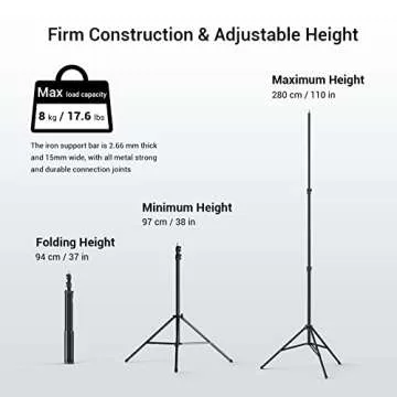 SMALLRIG Photography Light Stand 110"/9.2ft/280cm, Air-Cushioned Aluminum Photo Video Tripod Stand with 1/4" Screw for Softbox, Studio Light, Reflector and Ring Light, Max Load 8kg, RA-S280