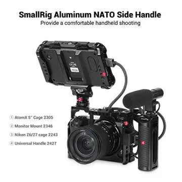 SMALLRIG Universal Aluminum NATO Side Handle Grip for DSLR Camera Cage with Cold Shoe Mount Built-in Wrench, Up and Down Adjustable - HSN2427