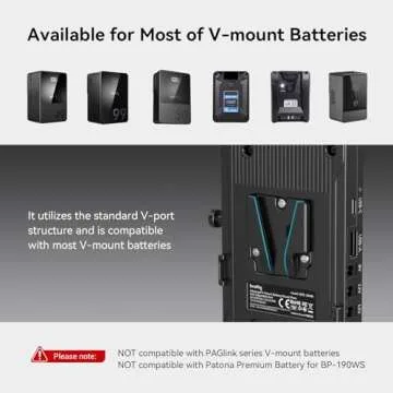 This V mount plate is compatible with a range of batteries including SmallRig VB50, VB99, VB99 Pro, and VB155.
