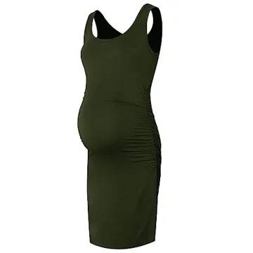 Smallshow Women's Maternity Dress - Summer Ruched Pregnancy Tank Dress in Army Green